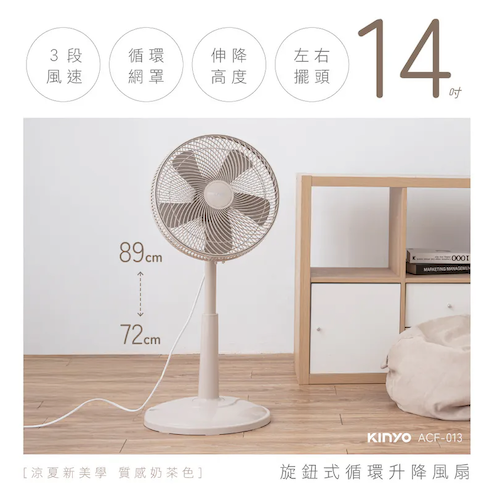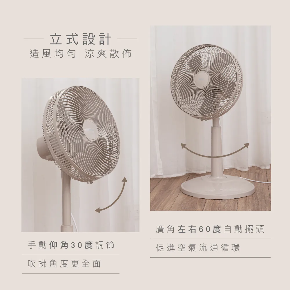 循環對流網罩設計,大幅提升對流效率 上下手動仰角調節,吹拂角度更全面 大角度自動左右擺頭,大面積送風 3檔風速調節,柔和到強勁 6米以上長風距,穩定不斷流 5片式扇葉風感柔順,創造舒適自然風 14吋大小,適用4-10坪空間 後側貼心手提設計,方便移動 可拆卸式前網,清潔機身不費力 72cm-89cm伸縮高度,台扇、立扇輕鬆轉換 馬達旋鈕式開關設計,操作直覺簡單 保固說明:非人為因素之損壞,原廠保固一年。 使用前請確實遵從產品說明書內之操作指示及注意事項。 如需辦理退換貨,包裝與配件須完整(商品配件、包裝完整,無刮痕損傷)。 產地:中國