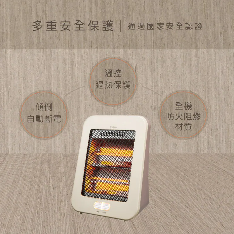 多重安全保護:傾倒自動斷電、溫控過熱保護、全機防火阻燃材質 通過國家安全認證,品質有保障