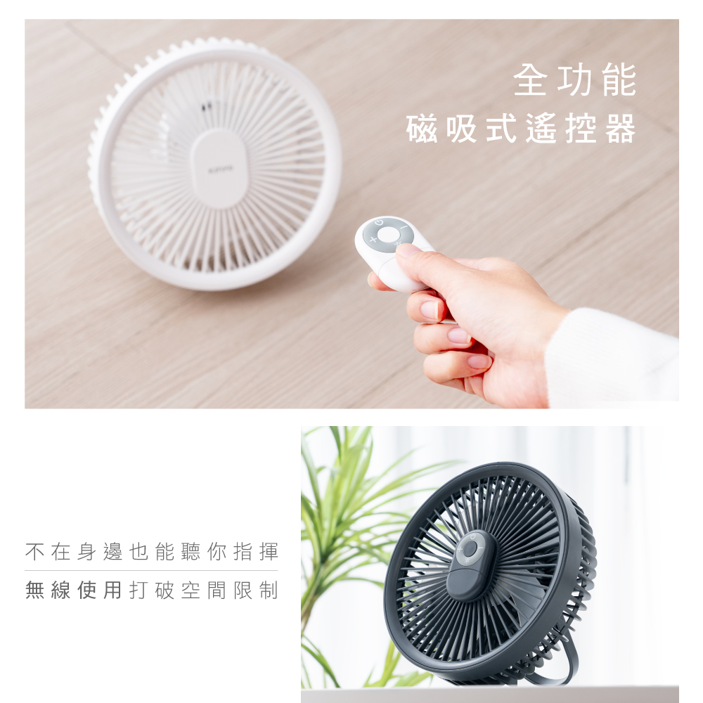 三檔風速+自然風模式,模擬大自然吹風。 全功能磁吸式遙控器,無線遙控,一鍵智能掌控。 大容量3000mAh電池,超長續航2.5-7小時。 USB充電,充飽電帶著走。 無刷電機,低噪靜音送風,壽命長。 可拆卸式前網,清潔機身不費力。 7吋大小,桌立吊掛兩用,180度掛勾,可手動調整角度。 具過充過放保護,涓流充電,延長使用壽命,更安全。