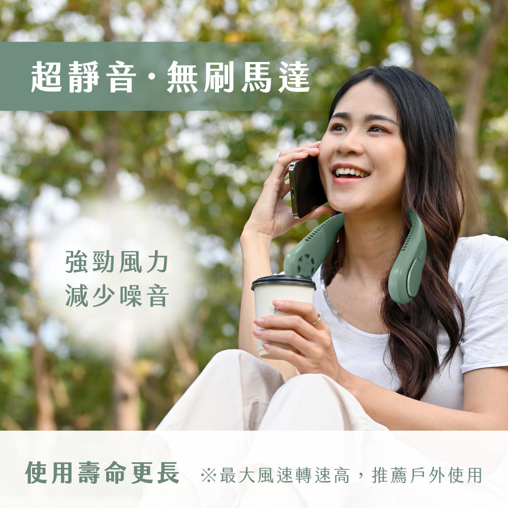 .24片無葉雙渦輪設計,長髮配戴不捲頭髮 .兩側寬幅坡風導流送風,環繞出風,自然柔風不直吹 .單鍵調節,三檔風速,隨心所欲調整風扇 .選用無刷馬達,更降噪,靜音出風 .USB直充雙電池,大容量2400mAh鋰電池,續航6小時 .穿戴式風扇,彈性矽膠軟管頸掛,可以需求調整角度,配戴舒適 .國家檢驗合格,具過充過放保護,使用更安心