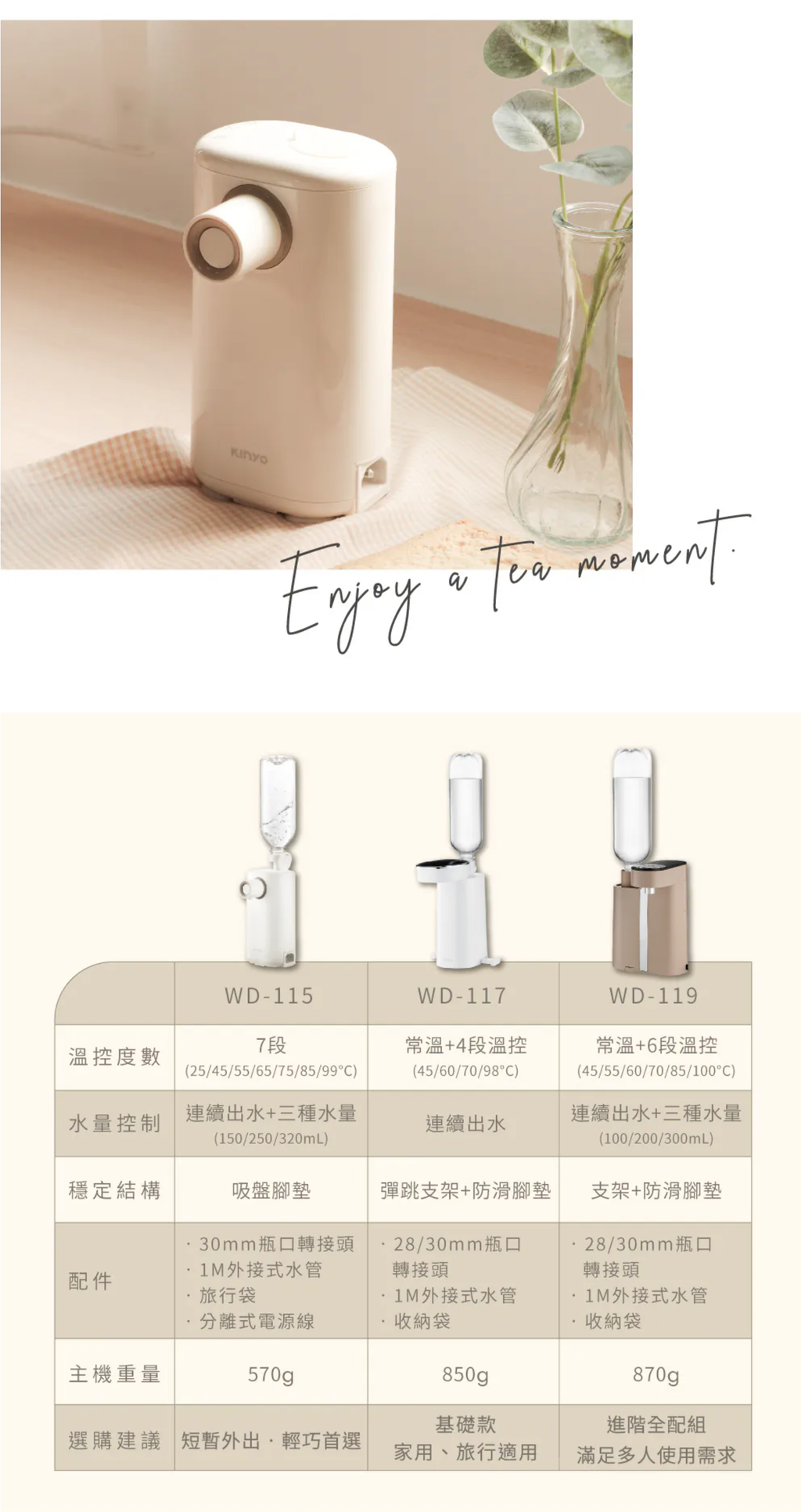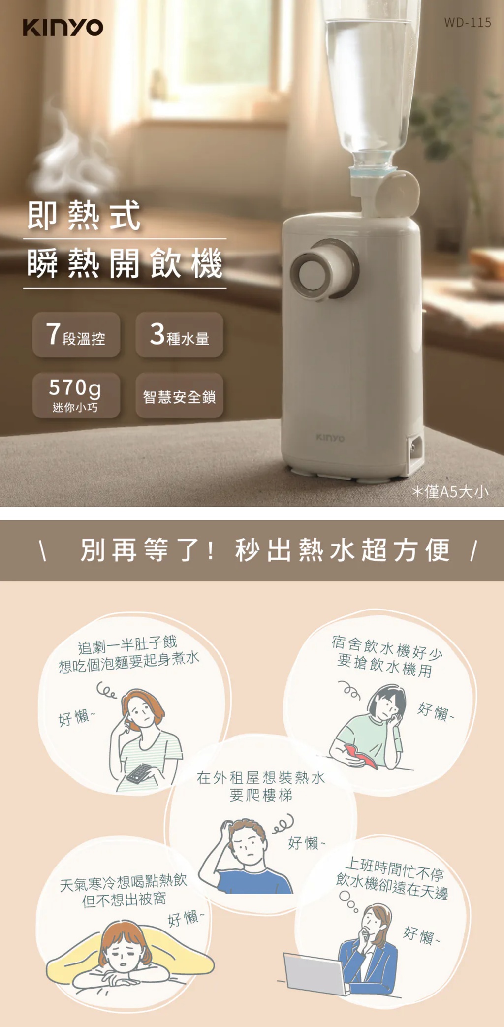 KINYO的每一樣產品都是為了解決生活中的問題,不僅堅持優良品質與最佳好感度的外觀,更用心提升功能多元、操作便利、友善人性化等層面,成就現代人講究不將就的日常,進一步擴充使用情境、豐富人們生活,隨心所欲享受每一刻的精彩,就是KINYO夢想中的質感生活。