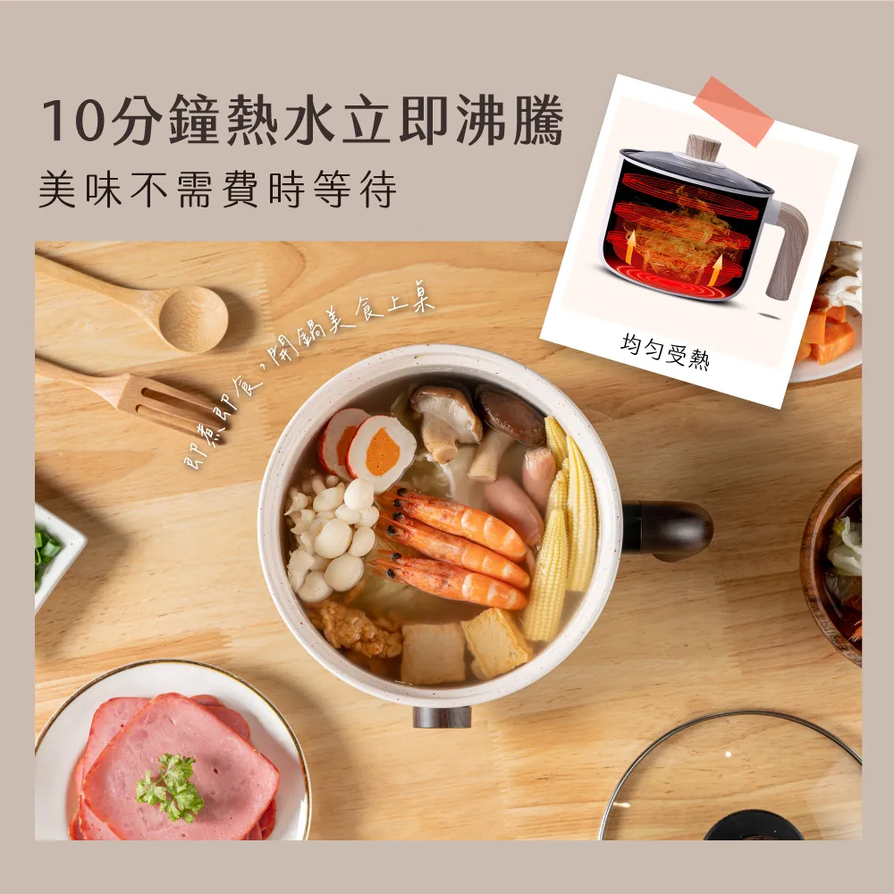 好清潔不沾鍋,鎖住溫度不燙手 同時蒸煮簡單又快速,個人獨享、多人分享皆適用 烹煮、清洗便利順手,食材翻炒不噴濺 烹煮狀況一目了然,快速開美食上桌 滿足各種料理需求,防乾燒、溫度過載斷電保護 有效防止發熱盤過熱,延長使用壽命,預防滲水使用更安心 舒適好握精細質感,視覺味蕾雙倍滿足
