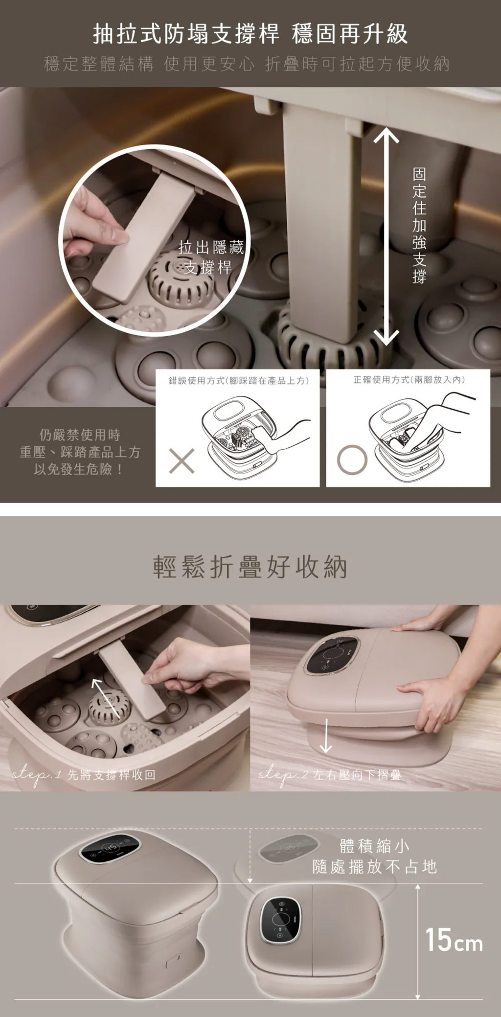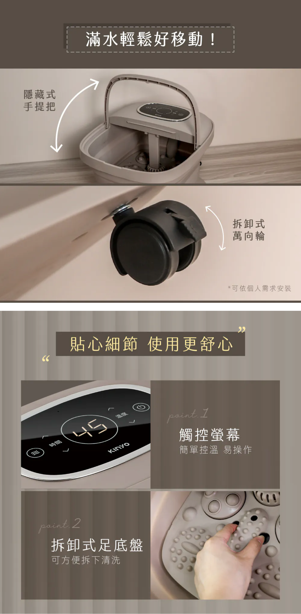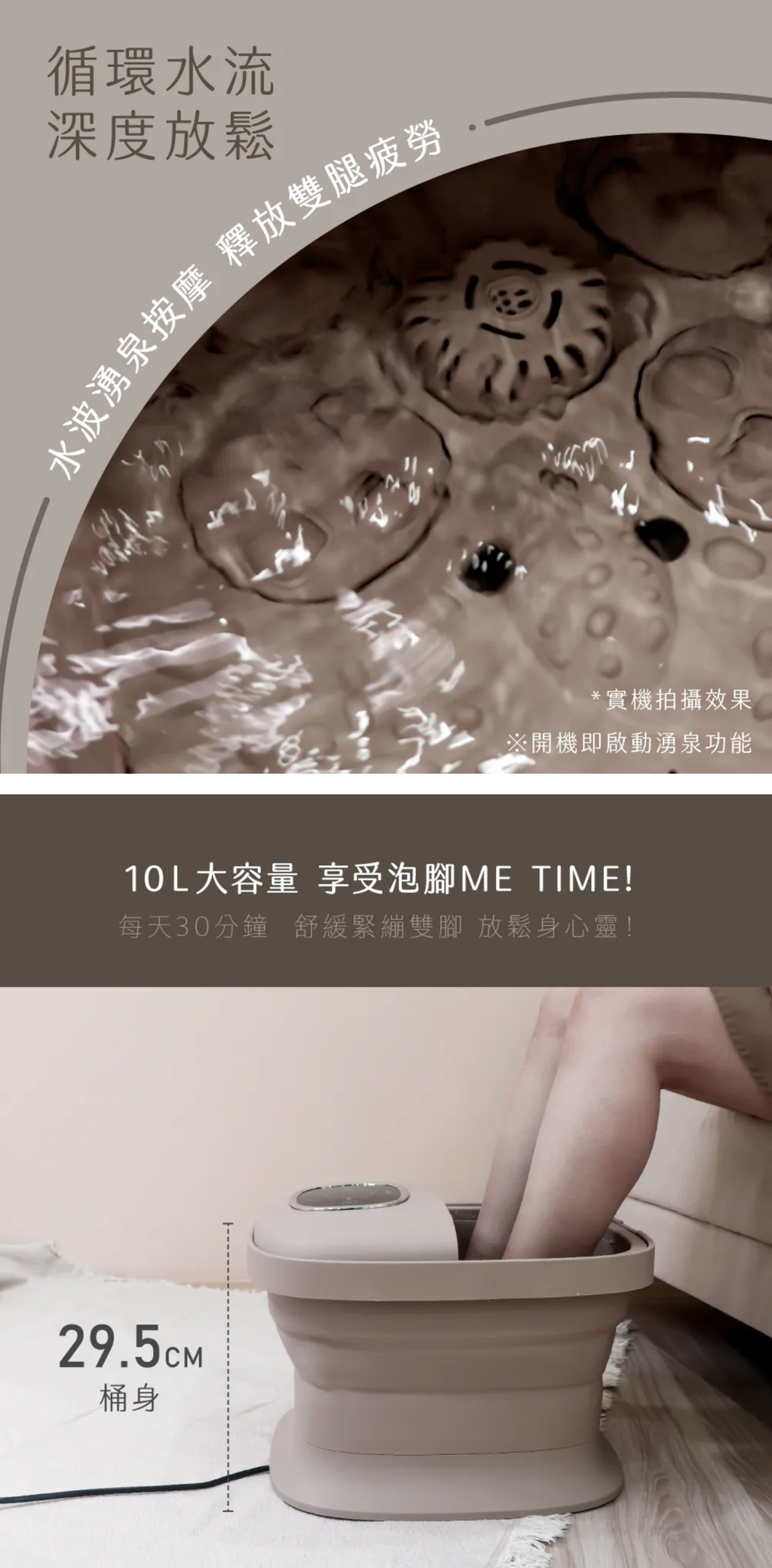 ■商品特色 電子調控溫度 35℃-48℃ 每1℃精準控溫 恆定溫暖水溫 採用PTC陶瓷發熱 安全可靠 恆溫湧泉按摩 足底湧泉 享受居家舒適SPA 腳底電動滾輪 電動按摩底板 深層按壓足底穴位 藥草放置盒 集中添加藥材 保持水中乾淨 防塌支撐桿 結構穩固升級 使用更放心 底部萬向輪 搭配輪子配件 輕鬆好移動 為保障使用者安全,所有產品皆在裝水的情況下進行嚴謹的高壓漏電測試。 若新品桶内有殘水、水漬殘留為正常現象。 每一台足浴機皆通過安全測試,請安心使用。 ■保固說明:非人為因素之損壞,原廠保固一年。 ■使用前請確實遵從產品說明書內之操作指示及注意事項。 ■如需辦理退換貨,包裝與配件須完整(商品配件、包裝完整,無刮痕損傷)。 產地:中國