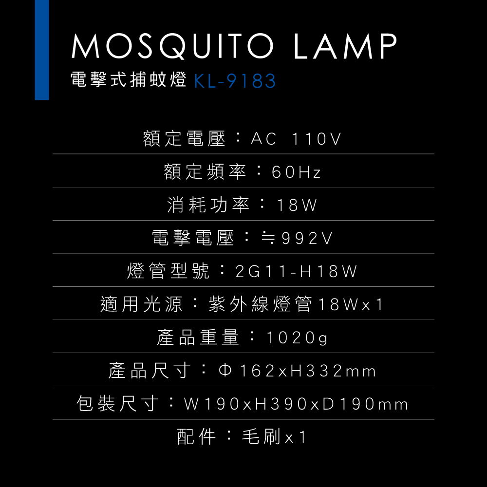 KINYO 18W電擊式捕蚊燈 KL-9183