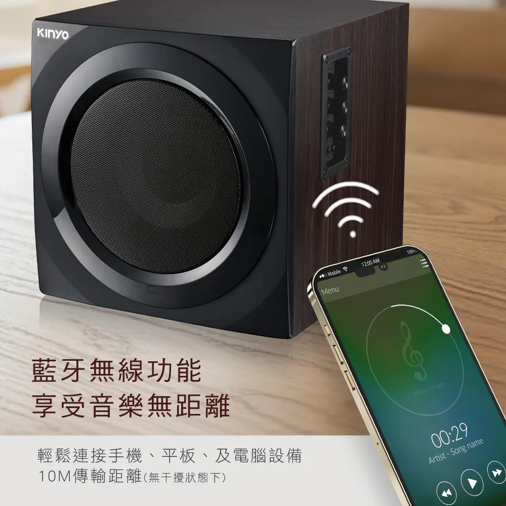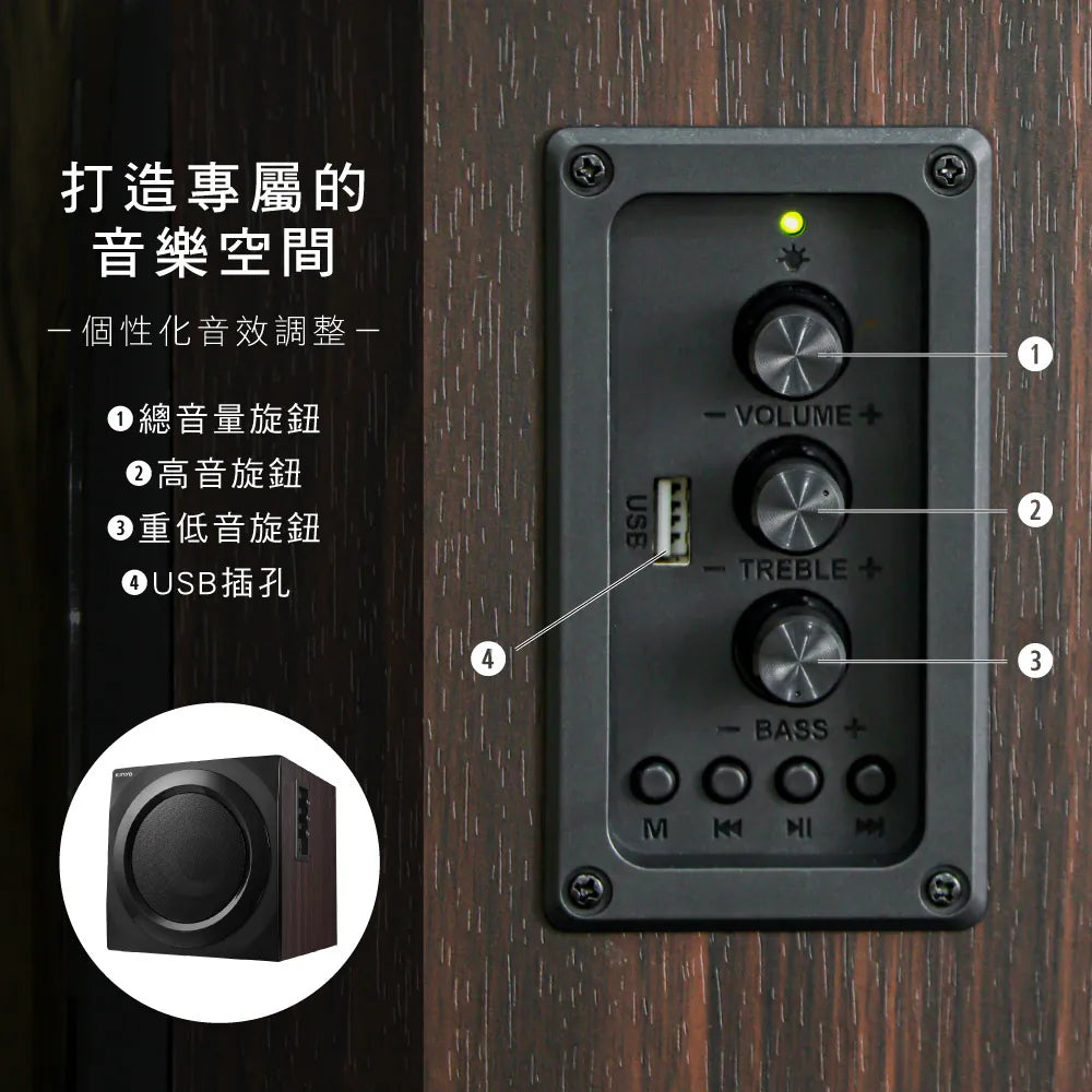 商品特色: 2.1聲道音頻系統,帶來身臨其境的聽覺盛宴 獨立低音喇叭,優化共鳴效果,聲音層次更加豐富 多功能旋鈕設計,輕鬆調節音量、高音與低音,音效由你掌控 兼容藍牙、USB隨身碟與AUX輸入,滿足多種播放需求 藍牙無線連接,輕鬆連接手機、平板、及電腦設備 支援3.5mm插孔設備,如手機、平板、與電腦 配備遙控器,讓您隨時隨地掌控音樂,盡享便利生活 圓形網面結合木質箱體,散發簡約與現代感的魅力 簡潔大器的外觀設計,內斂風格完美融入家居擺設 旋鈕與按鍵巧妙設於側面,保持外觀的簡潔與優雅 綠色電源指示燈,開機即貼心提示,同時營造聆聽氣氛 保固說明:非人為因素之損壞,原廠保固一年。 使用前請確實遵從產品說明書內之操作指示及注意事項。 如需辦理退換貨,包裝與配件須完整(商品配件、包裝完整,無刮痕損傷)。 產地:中國