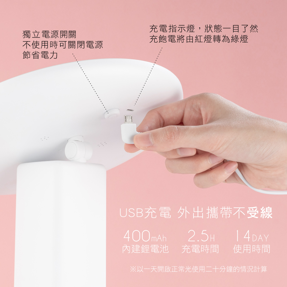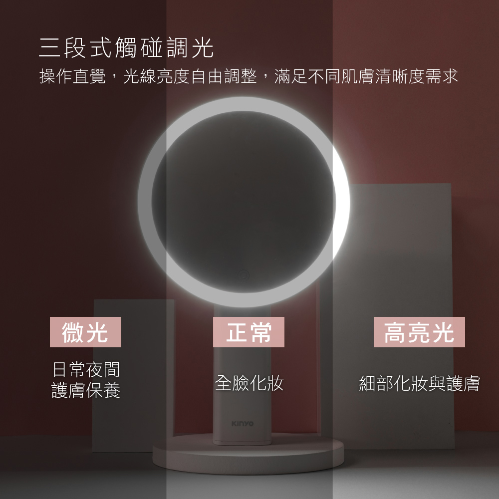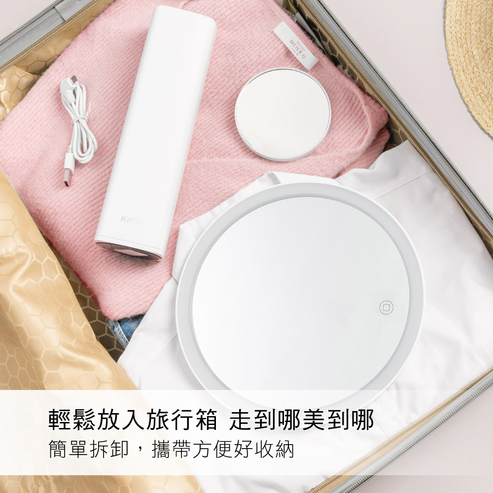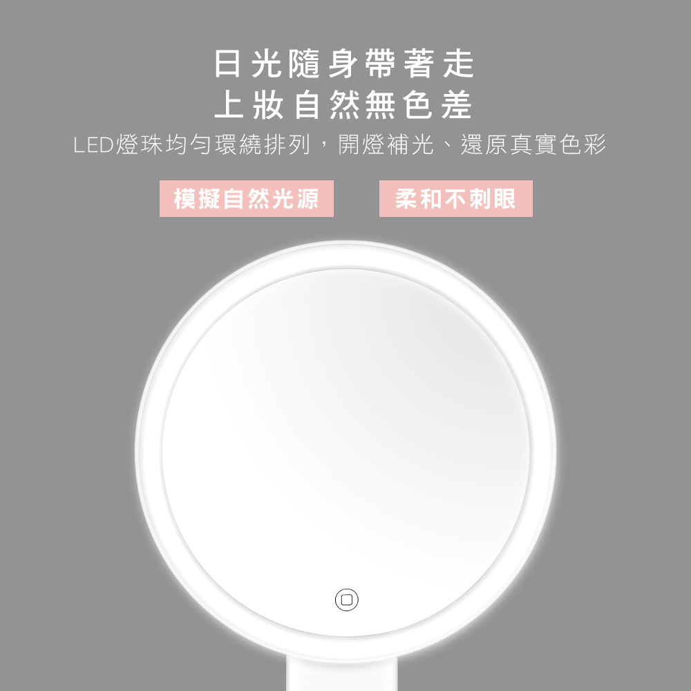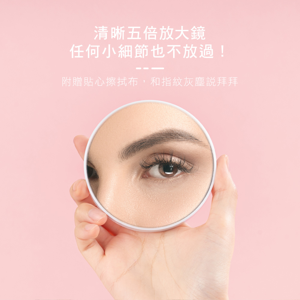 內建400mAh鋰電池,充電使用不受『線』。 19CM超大高清鏡面,妝容搭配一併搞定。 22CM底座,舒適高度,打理面容不必彎腰低頭。 模擬自然光線,柔和均勻不刺眼。 自然補光,還原真實色彩。 三段式觸碰調光,操作直覺,光線亮度自由調整。 獨立電源開關,不使用時可關閉電源。 高密度LED燈,光線均勻,低耗電量,省電又環保。 重覆水洗魔術貼底座,穩固吸附不易傾倒。 可拆卸式底座,方便攜帶簡單好收納。 簡約造型,百搭時尚超耐看。 附贈試鏡布及放大五倍鏡,肌膚細節清楚掌握。