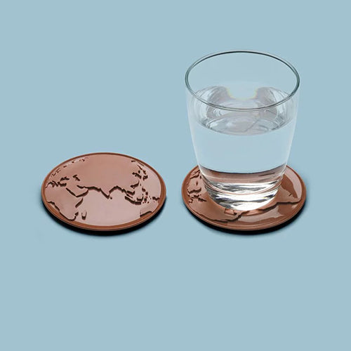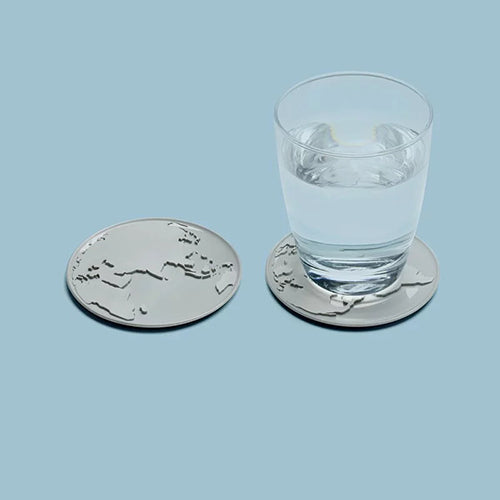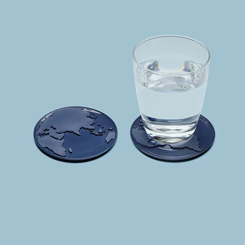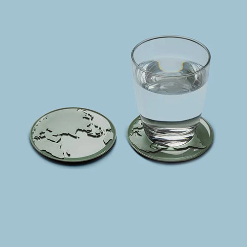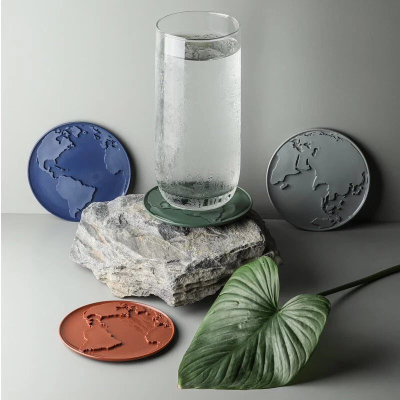 地球的溫度正不斷的上升冰川正在加速融化 以東半球以及西半球做為杯墊發想設計,使用國際環保組織(EJF)合作之回收漁網,杯子上流下的水象徵著佔地球面積70%的海洋。 地球只有一個,生活在這片土地的我們保護好環境是最重要的事。