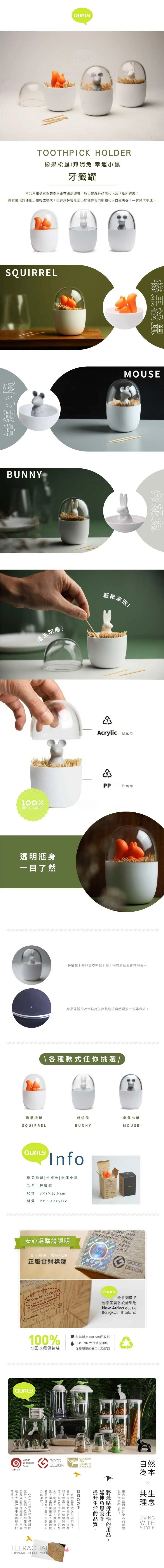 懷念森林之美 富含生物多樣性的森林正在遭到破壞,原因是森林砍伐和人類活動所造成。 儘管環境無法馬上恢復或取代,但這款牙籤盒至少能提醒我們動物和大自然美好,一起珍惜地球。 商品100%可回收 此商品不附贈牙籤 ※注意:產品外觀的細線與收合點,為產品成形時所產生的自然現象,並非瑕疵,不介意者再購買,謝謝。 ※注意:上蓋非真空密封上蓋,如稍有鬆動為正常現象。 商品規格 品名:QUALY 牙籤罐 尺寸:Ø7 × 10.6 cm 材質:PP + Acrylic 其他說明 顏色略有偏差,以實品顏色為準。 More information: The color of real products will be slightly different form the website through your monitor. 產地/製造方式 泰國