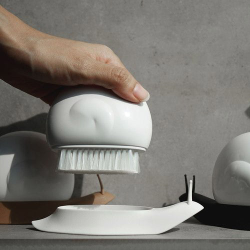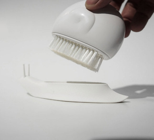 洗刷刷洗刷刷 我是一隻神奇的小蝸牛,我出生的時候殼內就長出了一把刷子,我最喜歡幫人清潔指甲垢,當你使用洗手乳後記得拿起我,在你的指甲上刷個幾下,他們就會乾淨溜溜了。