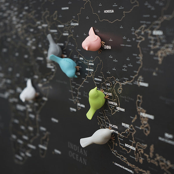 迷你雀兒在各處輕飛 色彩繽紛的小雀兒在任何你看得到的地方飛舞,陪伴你如影隨形。辦公桌、小黑板上、冰箱上等,只要有磁力的地方,就能看到小雀兒的身影,沒想到,在居家生活中也能體會大自然的美好!