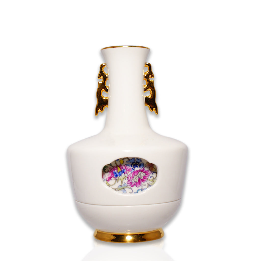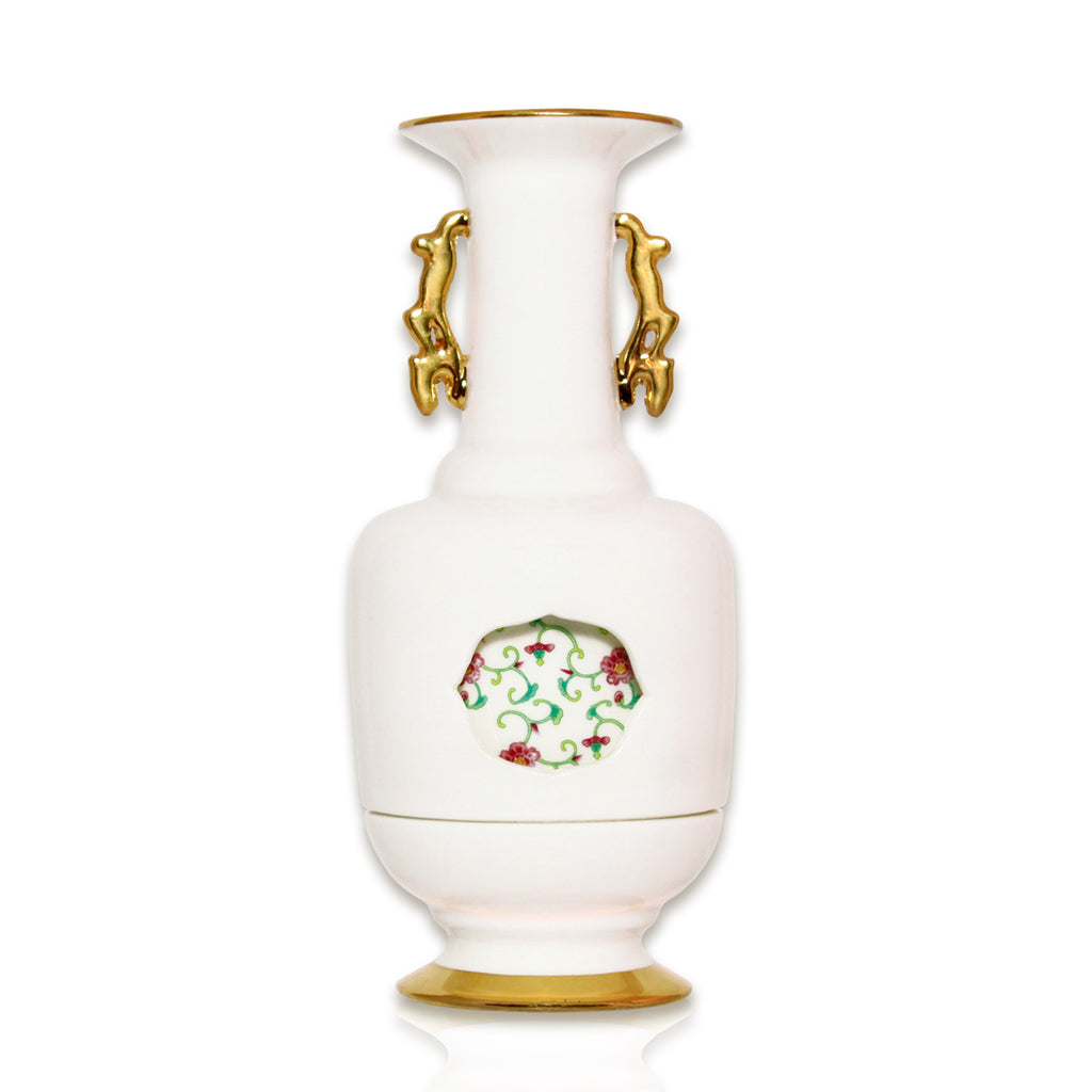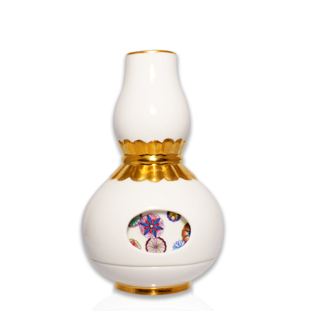 此系列利用解構方式,呈現轉心瓶的效果,以「清乾隆黃地粉彩福壽活環雙耳瓶」、「清乾隆冬青描金壽字瓶」、「清乾隆磁胎洋彩轉旋葫蘆瓶」、「清乾隆洋彩黃錦地乾坤交泰轉旋瓶」瓶型做為創意來源,搭配亮麗的釉色,時尚華美。同時在瓶身開窗,飾以錦地花紋,百麗爭妍,無比尊貴,轉旋之間,別有風景。創意精緻的轉心瓶不但能做為小花器,還能當盛杯及擴香瓶,多元展現各種實用功能。 器型取自「清 乾隆 冬青描金壽字瓶」、紋飾取自「清 乾隆窯 琺瑯彩藍地花卉小碗 」。 注意事項 1.本產品不得放入洗碗機、微波爐、烤箱使用。 2.請用中性洗滌劑和海綿清洗。 3.產品一旦使用後經嚴重碰撞或產生裂痕,不建議繼續使用。 4.因拍攝略有色差,圖片僅供參考,顏色請以實際收到商品為準。