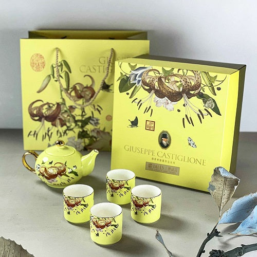 TALES 神話言 郎世寧 仙萼長春精緻骨瓷 百合茶具組(附提袋)