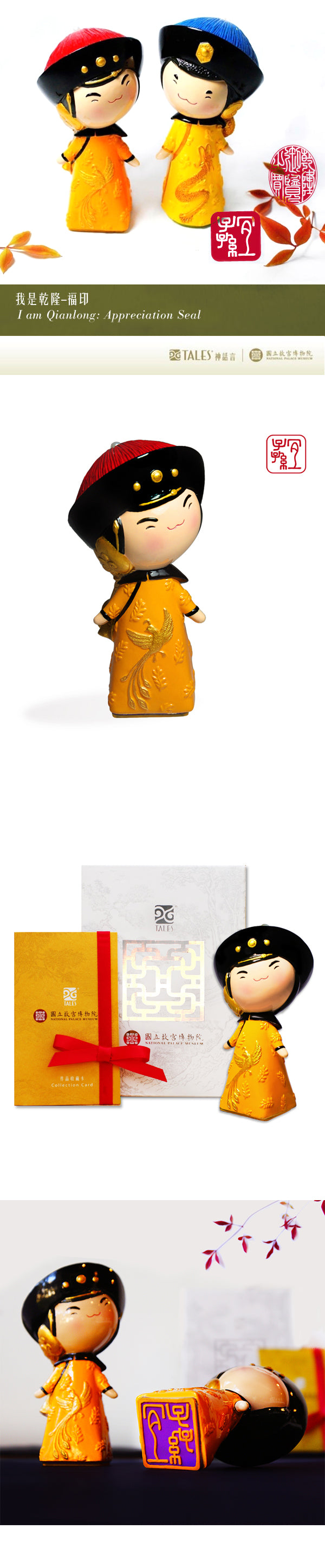 乾隆皇帝喜愛詩文藝術,尤好於珍藏書畫上題詩用印,《我是乾隆‧福印》系列採童趣風格設計,創造Q版造型印章,底部分別篆刻「乾隆御覽之寶」、「宜子孫」,源於乾隆皇帝當年使用之寶璽,使用此印,如同我是乾隆爺。