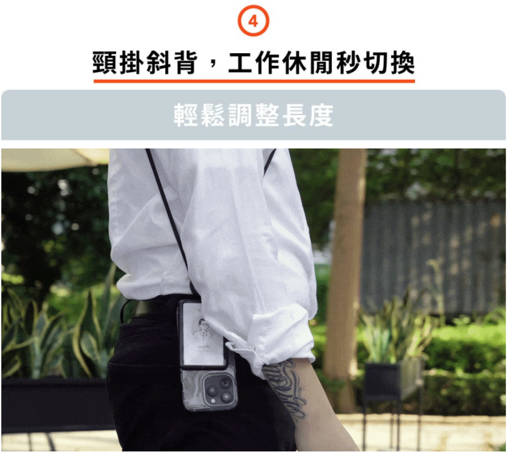 啪!無需拆卸任何掛鉤或伸縮繩,手機馬上結合證件套掛繩,立即騰空雙手,切換行動模式,生活各種挑戰隨時迎刃而解。