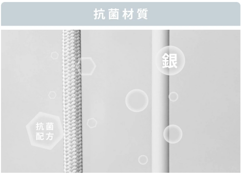 編織與矽膠材質皆添加抗菌配方,預防孳生細菌,雙重保護肌膚。