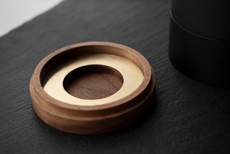 外圍尺寸:H 16 x 𝞍 89.5 mm 內圍尺寸:H 6 x 𝞍 45 mm 重量:66g 材質:胡桃木, 黃銅