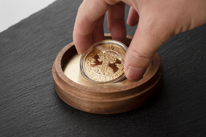 CoinDrift 以全金屬打造,造型宛如堅固無比、防守嚴密的金庫,透過錢幣投入、分類、存放的過程,形成最佳聚財風水環境,讓「錢母」在財圓流動之下達到引財、聚財、守財的「吸錢」效果,並透過上等『胡桃原木』與『黃銅』將五行融入生活之中。 *注意:產品不包含示意圖中的「錢母」。