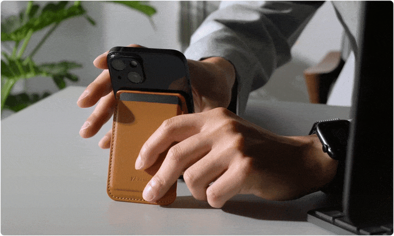 完美「手機錢包」體驗|側開式紙鈔收納 X 彈匣式卡片快取 收納 1+2+5|1 卡直接感應,2 卡屏蔽保護,5 張鈔票收納 MagSafe 磁力更強| 磁力加強模組,安心攜帶不怕掉落 內建 NFC 晶片|萬用捷徑,效率加倍,開創科技新體驗 免取卡感應|感應再強化!直接感應支付通勤優雅不 NG 無軸式支架|精煉支撐結構,造就輕薄簡約美型外觀 輕薄便利|市面最薄 6mm,隨身攜帶輕巧無負擔 頂級皮革|高品質皮革匠心製作,經久耐用好保養 專屬壓印|客製化字樣,獨一無二的送禮選擇 ※ iPhone 14 Pro / 15 Pro / 16 Pro 如搭配手機殼,可能會因尺寸造成與鏡頭重疊。 透過加購 MagSafe 磁吸環加強磁力即可改善吸力不足問題。