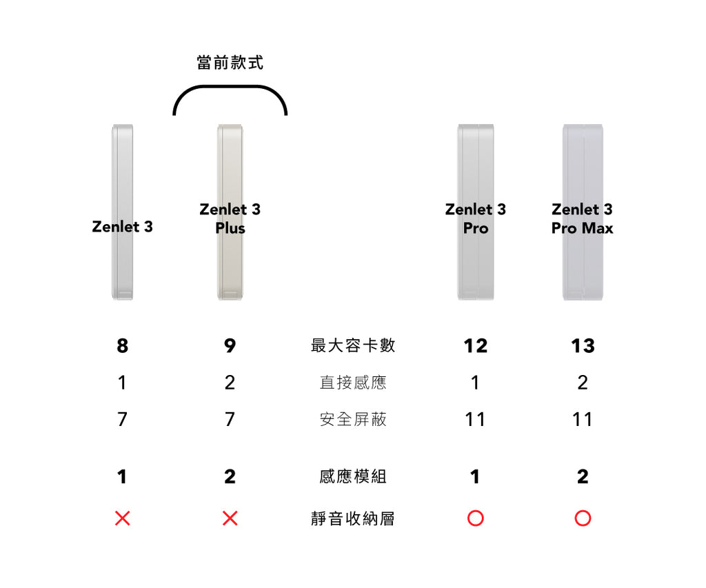 無論你對錢包使用習慣為何,Zenlet 3 系列 的 4 種規格,必有一款能符合你的需求。不僅減少高達 60% 傳統錢包的體積,且無需對容量妥協,充分展現你獨特的聰明生活態度。